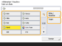 Modification des destinataires enregistrés dans les boutons 1 touche