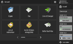 L'écran <Accueil> s'affiche lorsque vous appuyez sur <Accueil>. L'écran <Accueil> comprend une liste de boutons de fonction et sert d'accès à diverses fonctions.