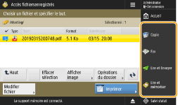 Les boutons de raccourci vers des fonctions peuvent être affichés sur chaque écran de fonction. La mémorisation des fonctions utilisées fréquemment est pratique car elle permet d'utiliser constamment les fonctions sans revenir à l'écran <Accueil>.