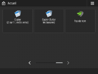 Vous pouvez modifier les boutons de réglage affichés sur l'écran des fonctions de base (pour la copie, la télécopie et la numérisation). Vous pouvez aussi afficher un écran Fonctions de base différent, personnalisé pour chaque utilisateur connecté.