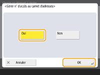 ![]() | Vous pouvez empêcher les fuites d'informations sensibles ou personnelles du carnet d'adresses en définissant un code PIN ou en évitant que certains destinataires s'affichent dans le carnet d'adresses. Vous pouvez également masquer le carnet d'adresses. Vous devez détenir les privilèges d'administrateur pour configurer ces réglages. |