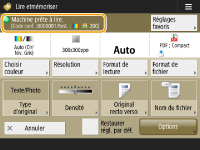 Lorsque vous appuyez sur <Lire et mémoriser> dans l’écran <Accueil>, puis sur <Réseau> ou <Support mémoire> pour numériser des originaux, l'écran de réglage suivant s'affiche.