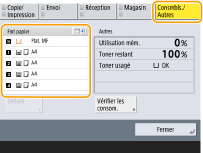 Il se peut qu'il n'y ait pas de bourrage papier à l'endroit indiqué, même dans ce cas, vérifiez tous les autres emplacements indiqués dans les instructions affichées à l'écran. L'écran indiquant qu'il y a un bourrage papier s'affiche de manière répétée jusqu'à ce que vous ayez éliminé le bourrage papier. Si vous appuyez sur <Fermer> sur l'écran indiquant un bourrage papier, l'opération peut continuer avec les réglages sélectionnés sans correction immédiate du bourrage papier. Ne retirez pas le papier d'un emplacement autre que celui qui est affiché comme emplacement de bourrage papier à l'écran. Cela peut causer des bourrages papier dans d'autres emplacement ou des pages manquantes dans les documents imprimés. |