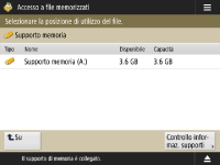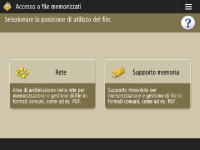 Schermata di selezione memorizzazione