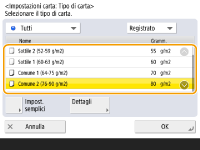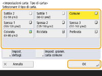 Quando si seleziona <Comune>, è possibile premere <Impost. gramm. carta comune> per selezionare la grammatura della carta.