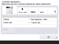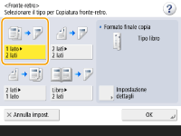 È possibile utilizzare solo carta A4 per <Libro 2 lati>.Quando si utilizza <Libro 2 lati>, posizionare gli originali sul vetro di lettura. |