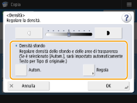 ![]() | È possibile regolare la densità dell'intero documento. Per esempio, l'aumento della densità della copia consente di leggere facilmente i caratteri chiari scritti a matita. Regolazione della densità delle copie | |