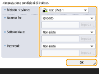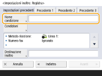 È inoltre possibile visualizzare la schermata delle <Impostazioni inoltro> premendo <Dest./Impostaz. inoltro>(Schermata <Home>) <Impostazioni inoltro>. |