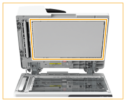 Pulire il lato posteriore dell'alimentatore e il vetro di lettura.