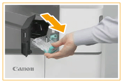 Rimuovere la confezione di punti vuota dalla cartuccia dei punti.
