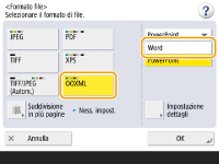 1 | Selezionare <OOXML> selezionare <PowerPoint> dall'elenco a discesa. premere <Impostazione dettagli> <OCR (Testo ricercabile)>.![]() |