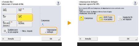 1 | Selezionare <XPS> premere <Impostazione dettagli> <OCR (Testo ricercabile)>.![]() |