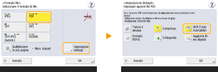 1 | Selezionare <PDF> premere <Impostazione dettagli> <OCR (Testo ricercabile)>.![]() |