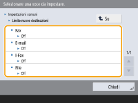 Quando si inviano fax e dati acquisiti, le destinazioni disponibili possono essere limitate ai tre modi riportati di seguito, per garantire che gli utenti non possano specificare la destinazione inserendo testo.