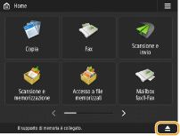 Se <Selez. opzione quando si collegano supporti memoria> è impostato su <On>, le scelte rapide per accedere alle funzioni disponibili vengono visualizzate nel momento che si inseriscono i supporti di memoria. <Selez. opzione quando si collegano supporti memoria> ![]() Inserire il dispositivo di memoria dopo che la macchina sarà uscita dalla modalità di riposo, in quanto in tale modalità le scelte rapide potrebbero non venire visualizzate. |