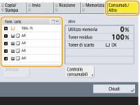 È possibile che l'inceppamento non si sia verificato nel punto in cui si sta controllando. Anche in questo caso, seguire le istruzioni sullo schermo per verificare tutte le posizioni. La schermata che indica la presenza di un inceppamento carta viene visualizzata ripetutamente fino all'eliminazione dell'inceppamento. Se si preme <Chiudi> sullo schermo per indicare la presenza di un inceppamento carta, è possibile continuare a svolgere le operazioni e specificare le impostazioni senza rimuovere immediatamente l'inceppamento. Non rimuovere la carta da una posizione diversa da quella visualizzata sullo schermo come posizione di inceppamento carta. Con tale operazione la carta potrebbe incepparsi in altre posizioni o potrebbero mancare della pagine nei documenti stampati. |