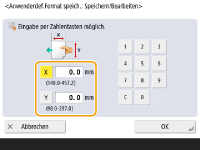 Geben Sie die Länge der <X>-Seite und der <Y>-Seite ein. Drücken Sie <X> oder <Y>, um die Länge der jeweiligen Seite mit den Zahlentasten einzugeben.