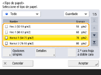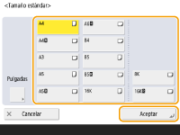2 | Seleccione el tamaño de papel y pulse <Aceptar>. |