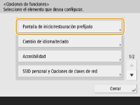 Si el equipo está configurado para que los usuarios tengan que iniciar una sesión al encenderse (Especificar cuándo mostrar la pantalla de inicio de sesión), aparecerá <Pantalla de inicio/restauración prefijada> como elemento en <Opciones personales>. La pantalla que aparece después de iniciarse el equipo se puede configurar para cada usuario.
