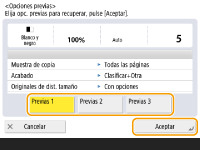 Puede recuperar las opciones de copia utilizadas anteriormente. Los detalles de la configuración recuperada se pueden modificar antes de copiar.