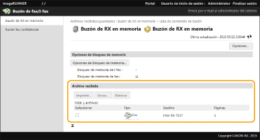 Gestionar documentos almacenados temporalmente en el Buzón RX de memoria