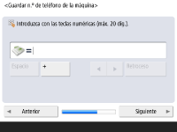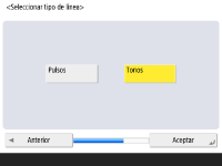 Especifique las opciones necesarias para utilizar la función de fax. ![]() Si el producto opcional necesario para enviar por fax (Opciones del sistema) no está instalado, continúe al Paso 11. Seleccione el país/región si aparece la pantalla de selección, y pulse <Siguiente>. ![]() ![]() Introduzca el número de fax y pulse <Siguiente>. Para obtener información sobre las opciones del fax, consulte Opciones de línea de fax. ![]() ![]() Pulse <Establecer>, introduzca el nombre de usuario y pulse <Siguiente>. ![]() ![]() Seleccione el tipo de línea y pulse <Aceptar>. | |