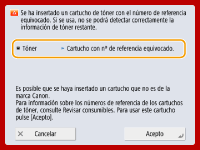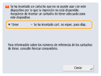 Reinicie el equipo. Si el mensaje no desaparece al reiniciar el equipo, apunte el mensaje y póngase en contacto con su distribuidor autorizado de Canon.