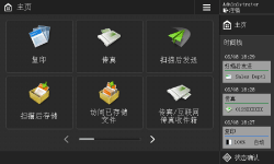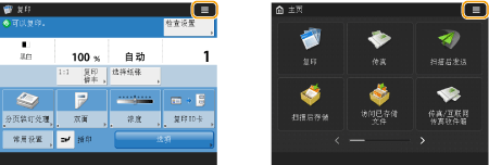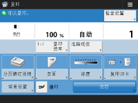 在<主页>屏幕上,按功能按钮会显示“基本功能”屏幕,可以从该屏幕访问复印、传真和扫描等基本功能。尽管“基本功能”屏幕上的显示屏幕和设置项目因功能而异,但也可以根据需要更改设置。