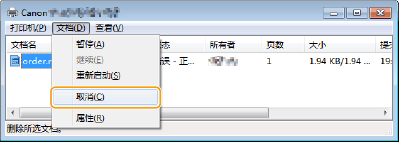 如果无法找到要取消的文档,则该文档已发送到本机。在这种情况下,无法在计算机上取消打印。
