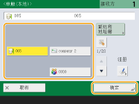 <地址簿(本地)>屏幕上的<注册/编辑>中的<注册新接收方>、<详细说明/编辑>和<删除>可用于注册新接收方、检查详细信息以及编辑/删除接收方。注册接收方 要使用远程地址簿,必须配置服务器机器设置 - 设置对外共享服务器机器上的远程地址簿。 |