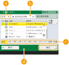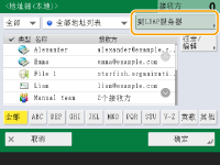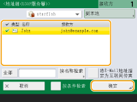 从移动设备的“地址簿”中,只可指定电子邮件接收方。 要使用此功能,必须在移动设备上安装“Canon PRINT Business”应用程序。通过应用程序使用本机 |