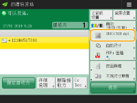 如果对于接收方指定<传真>或<互联网传真>,且设置了高于300 dpii的分辨率,则即使<黑白扫描时速度/图像质量优先>已设置为<图像质量优先>,也不会启用该设置。 |