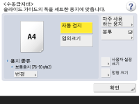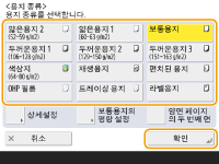 <확인>을 누릅니다. 수동 급지대에서 자주 사용하는 용지 크기 및 종류 등록