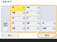 2 | 용지 크기를 선택하고 <확인>를 누릅니다. |
