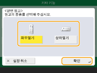 1 | <책 테두리 제거>을 누르고 <원고 크기>를 확인하십시오. ![]() <원고 크기>에 표시된 크기가 설정한 책의 크기와 다른 경우 <변경>을 눌러 크기를 선택합니다. 터치 패널 디스플레이에 표시된 원고 크기에 대해서는 북 프레임 삭제 모드만을 사용할 수 있습니다. |