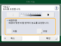 ![]() | 배경의 농도를 조정할 수 있습니다. 색깔이 있는 배경이나 신문처럼 뒷면의 글자나 이미지가 투명하게 비쳐 보이는 얇은 원고도 명확하게 전송할 수 있습니다. 배경 농도 조정 |