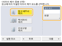 1 | <펀치구멍 제거>을 누르고 펀치 구멍 위치를 선택합니다. ![]() |