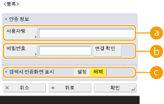 IP 주소를 입력할 때, 사용 가능한 DNS 서버가 정방향 조회만 지원하는지 확인합니다. DNS 서버가 정방향 조회만 지원하는 경우 4단계에서 <인증 정보>의 <사용안함> 또는 <사용함>을 누릅니다. <사용함 (보안인증)>을 선택할 때, DNS 서버가 역방향 조회를 지원하는지 확인합니다.
