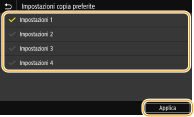 Selezionare la casella di controllo di tutte le impostazioni da visualizzare nella schermata Schermata princip. e selezionare <Applica>.