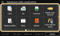 È possibile aggiungere/eliminare pulsanti di scelta rapida visualizzati nella schermata Schermata princip. in base alle proprie esigenze operative e preferenze. È anche possibile cambiare l'ordine in cui vengono visualizzati.