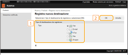 Selezionare il tipo di destinazione da registrare e selezionare [OK].