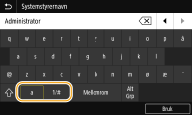 Enkelte taster på USB-tastaturet, som [Backspace], [Home] og [End], kan ikke brukes. Når taster som ikke kan brukes, trykkes, blir ingenting tastet inn eller endret. Trykk på [Delete]-tasten for å slette tekst. Ved å trykke på [RETURN/ENTER]-tasten fullføres tekstinntasting på samme måte som å velge <Bruk>. Du kan spesifisere oppsettet for tastaturet (amerikansk eller britisk). <Engelsk tastaturoppsett> Du kan når som helst koble USB-tastaturet fra maskinen. Du trenger ikke å gjøre noe som helst før du kobler det fra. Avhengig av visningsspråket, er det ikke sikkert du kan skrive inn enkelte tegn korrekt. Det er mulig at USB-tastaturet ikke virker som de skal, avhengig av typen. |
