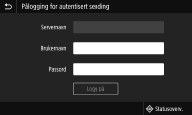 LDAP-serverautentisering) er aktivert, vises innloggingsskjermen for Autorisert sending når faks- eller skannefunksjonen brukes.