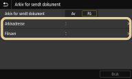 Angi lagringsdestinasjon for sendte dokumenter i adresseboken, merk av for mottakeren som skal brukes som lagringslokasjon, og velg <Bruk>.