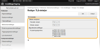 Merk av for krypteringsalgoritmen som skal brukes for TLS.