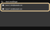 ![]() | Du kan velge en mottaker fra blant de siste mottakerne. Når du angir en tidligere brukt mottaker, bruker maskinen også de samme skanneinnstillingene, for eksempel tetthet, som du brukte forrige gang du sendte dokumenter til den mottakeren. |