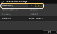 Konfigurere Ethernet-innstillinger manuelt1 | Velg <Av> i <Autodetektering>. |