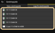 Om <Visa jobblogg> är inställt på <Av> kan du inte kontrollera loggarna för skickade dokument. <Visa jobblogg> |