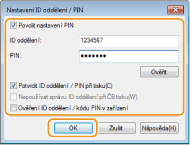 [Potvrdit ID oddělení/PIN při tisku]/[Potvrdit ID oddělení / PIN při odesílání faxu]