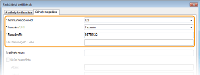 Állítsa be a kommunikációs módot és a faxszámot (vagy az URI-címet).